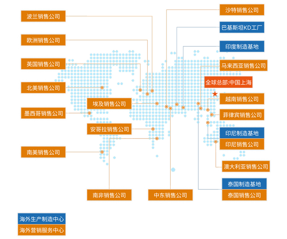 通過廣泛合作,上汽成為國內首家“全產業鏈出海”的汽車企業,目前在海外構建了包括創新研發中心、生產基地、營銷中心、供應鏈中心及金融公司在內的汽車產業全價值鏈,產品和服務進入全球100多個國家和地區;在海外擁有3大創新研發中心、3座整車制造基地和1座KD工廠、100多個零部件生產研發基地和3000多個營銷服務網點;并在印尼建立首家海外金融服務公司,為當地經銷商及終端消費者提供全面的汽車金融貸款及保險服務。