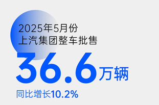 今年5月份,上汽集團整車批售36.6萬輛,同比增長10.2%,單月銷量實現“同比五連漲”。其中,5月份上汽集團新能源車銷量達12.5萬輛,同比大增50.3%;海外市場銷量達9.8萬輛,同比增長11.2%。